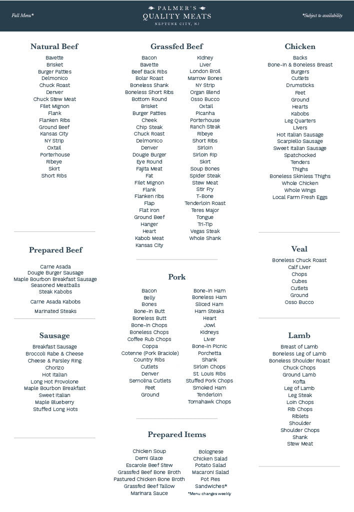 Palmer's Quality Menu
